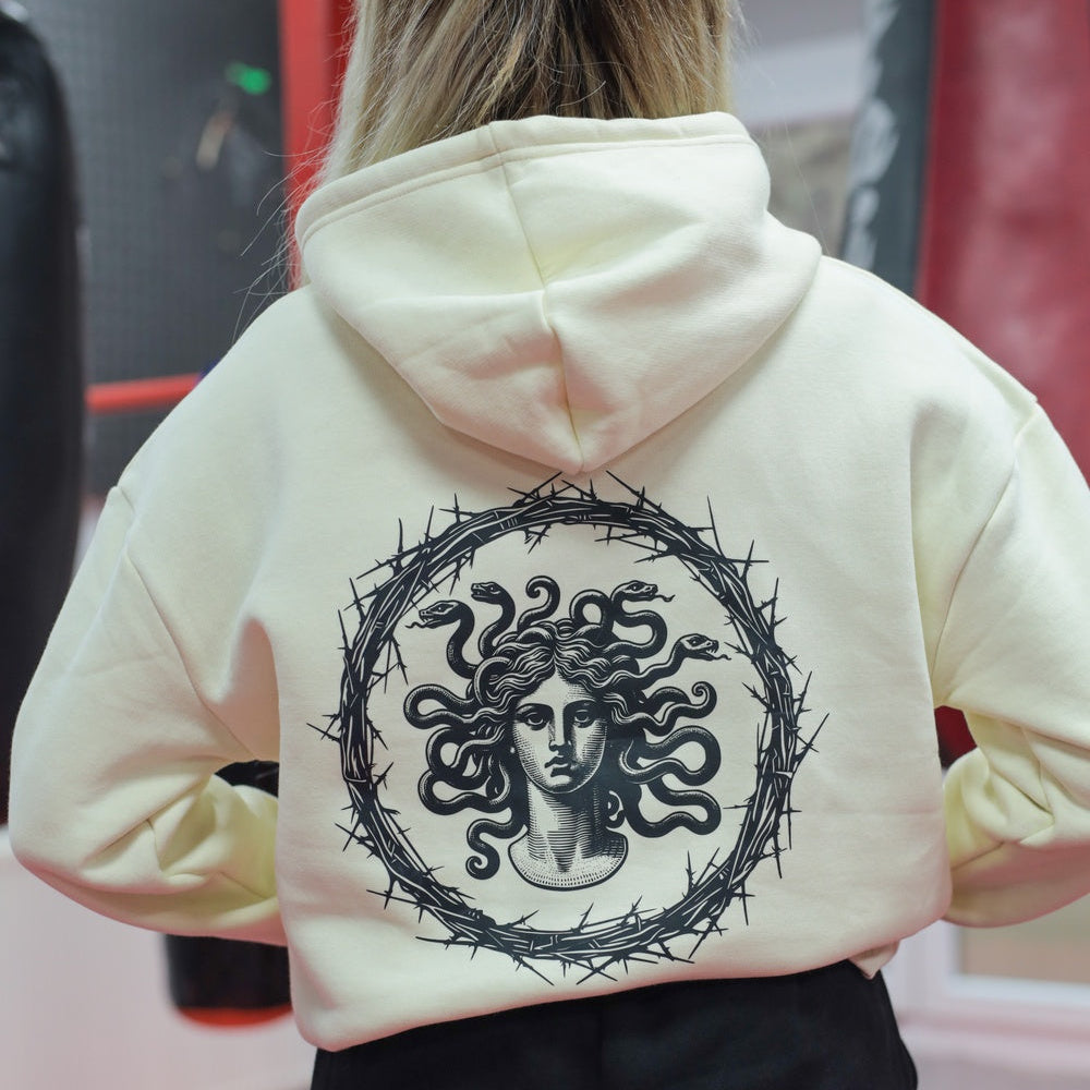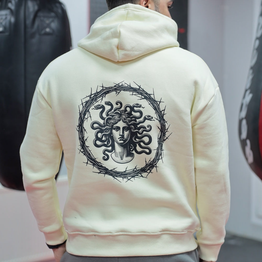 282 Casual Collection | Taş Rengi Medusa Baskılı %100 Pamuk Unisex Hoodie